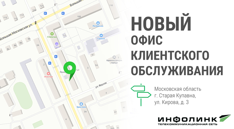 Ждем вас в новом офисе клиентского обслуживания по адресу: г. Старая Купавна, ул. Кирова д.3.